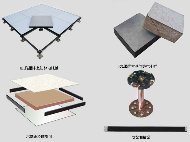 高密度木基,四周导静电黑色PVC封边,特殊金属底板,高耐磨防静电HPL或PVC贴面(可采用不同贴面、定做花色)。